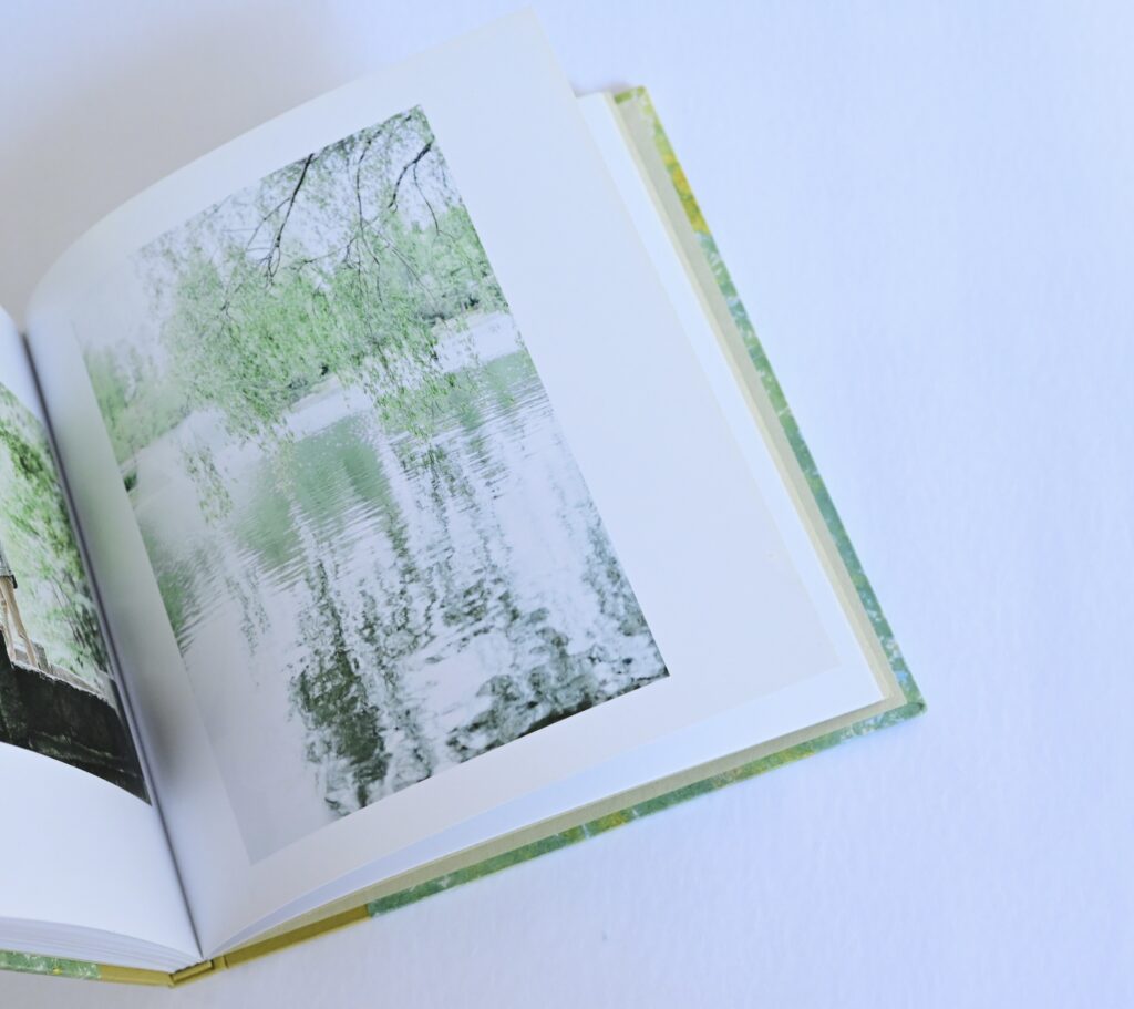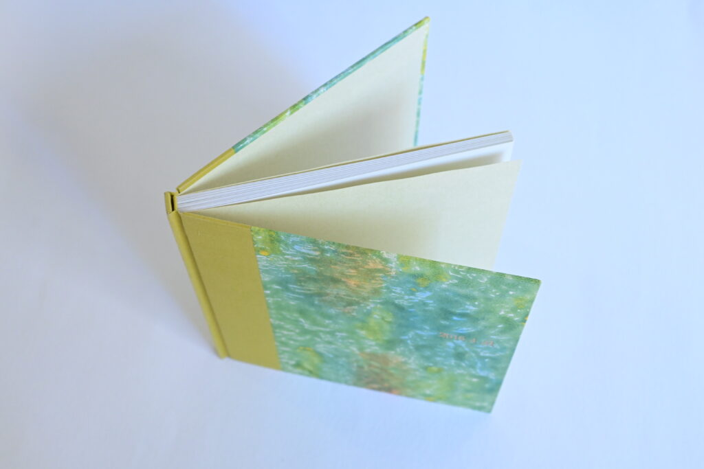 表紙は、公園の池の水面を映すようにこの本のために染めました。