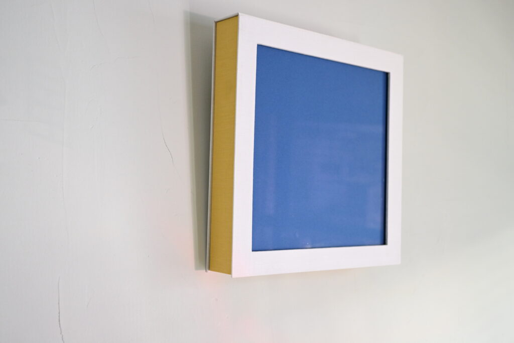 アクリル板と「抑え」の板で、絵などの作品を挟んでマグネットで固定するしくみ。