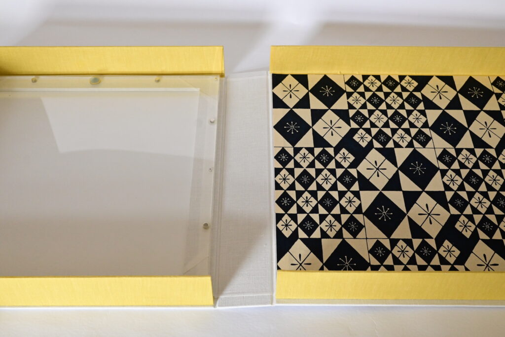 布張り夫婦函 アクリル板固定、アクリル抑え板制作
