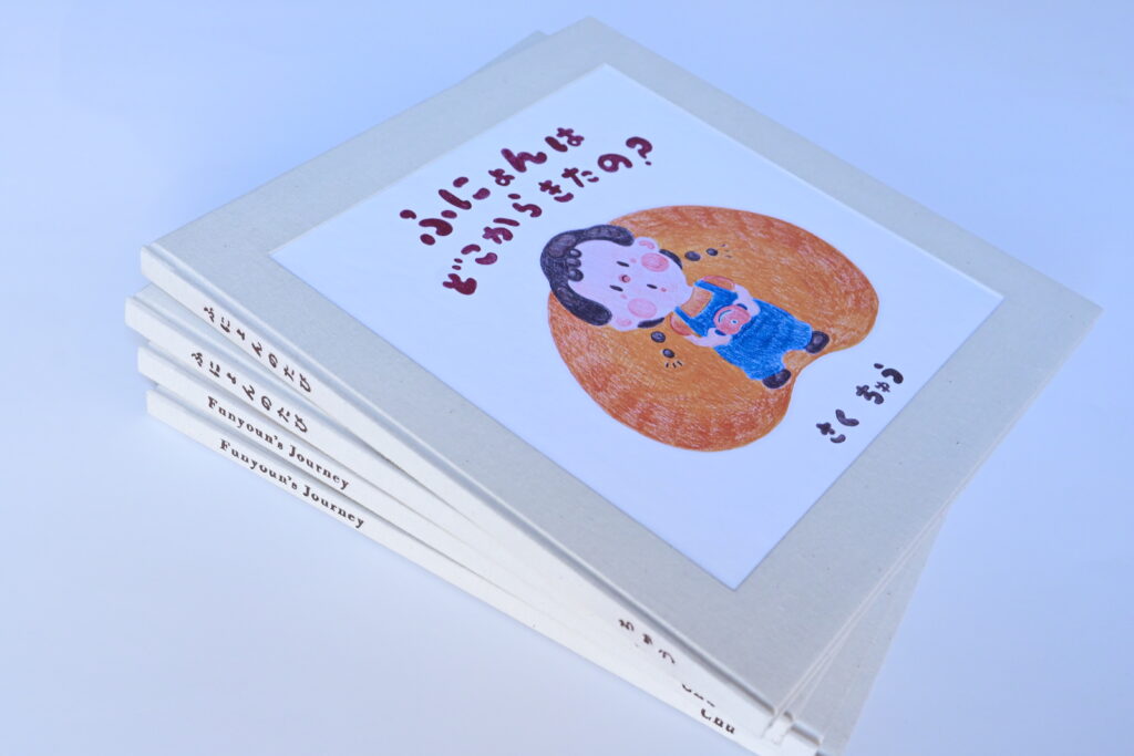 卒業制作として作られた、絵本の製本をさせていただきました。日本語版と英語版2種の制作です。